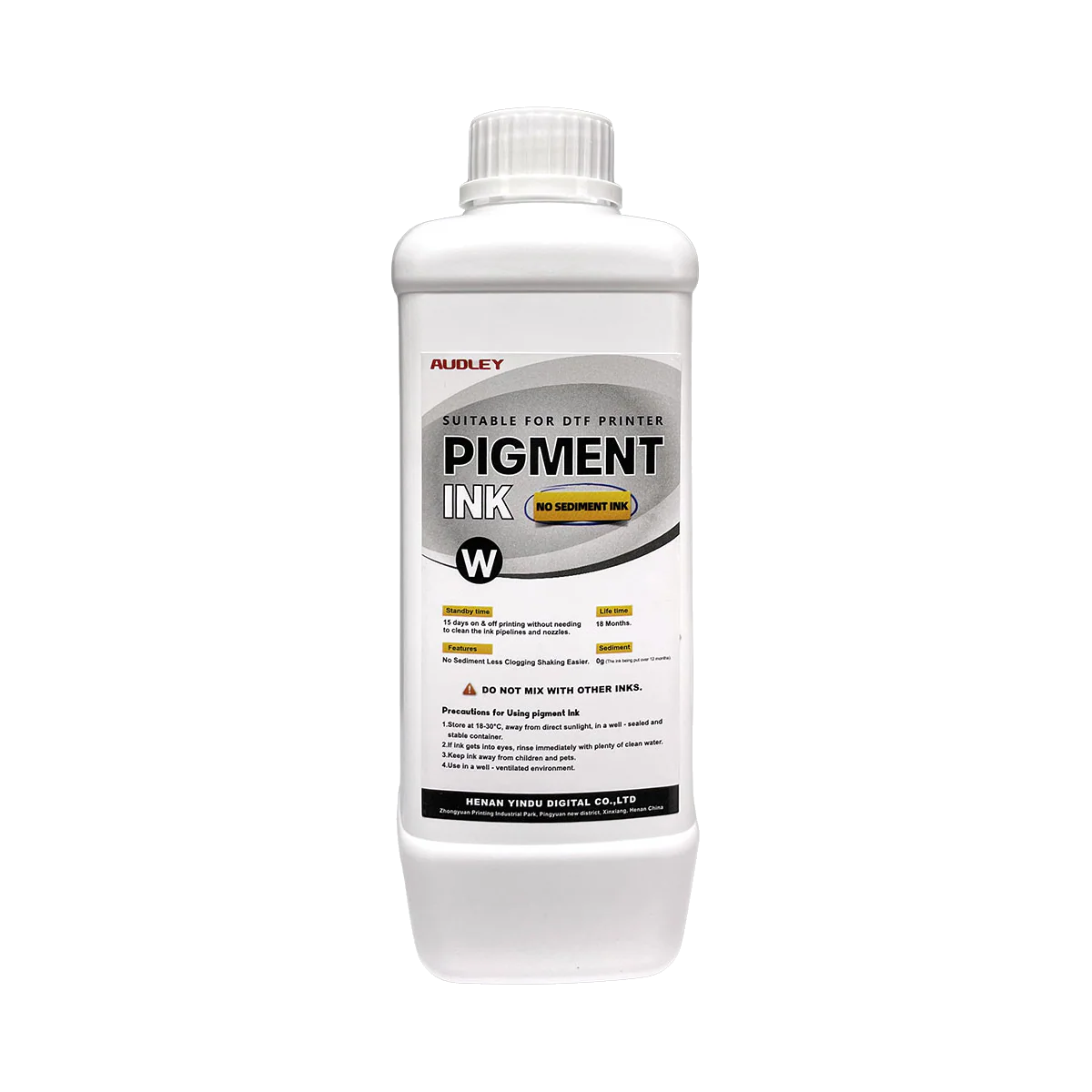 Tired of shaking bottles and dealing with clogged nozzles?Audley’s No-Sediment DTF White Inkis engineered withmicro-precipitation technologythat keeps pigment particles evenly suspended, ensuringsmooth flow and reliable performance.Whether your printer runs daily or sits idle forup to 15 days,this formula deliversbright, bold whiteswithout the mess or downtime.